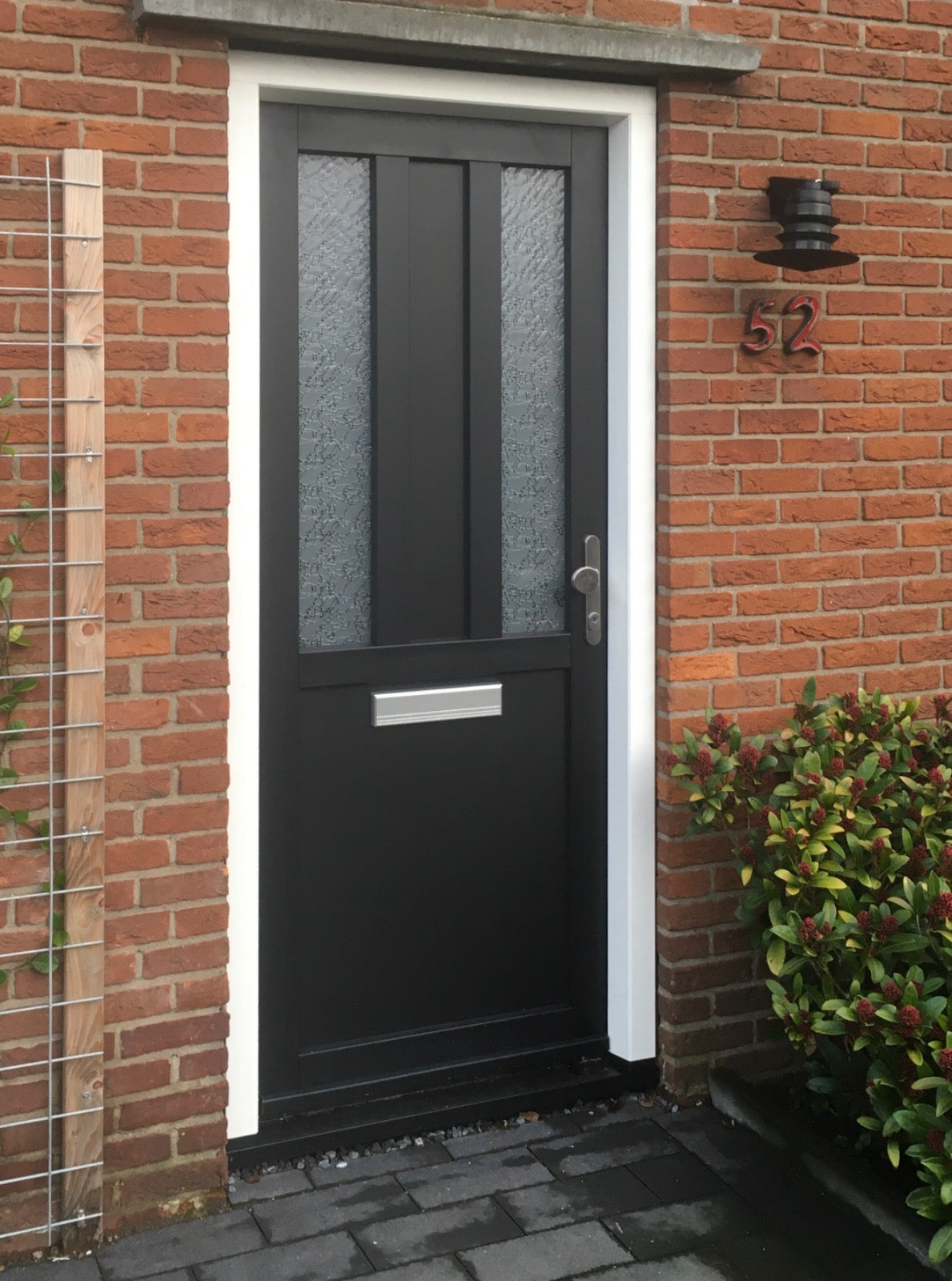 De Voordeur Model 5 is een moderne kunststof voordeur die zorgt voor een stijlvolle en comfortabele entree van je woning. Dankzij het stevige 120 mm profiel en HR++ dubbelglas biedt deze deur uitstekende isolerende eigenschappen. Hierdoor blijft warmte beter binnen en wordt energieverlies beperkt.